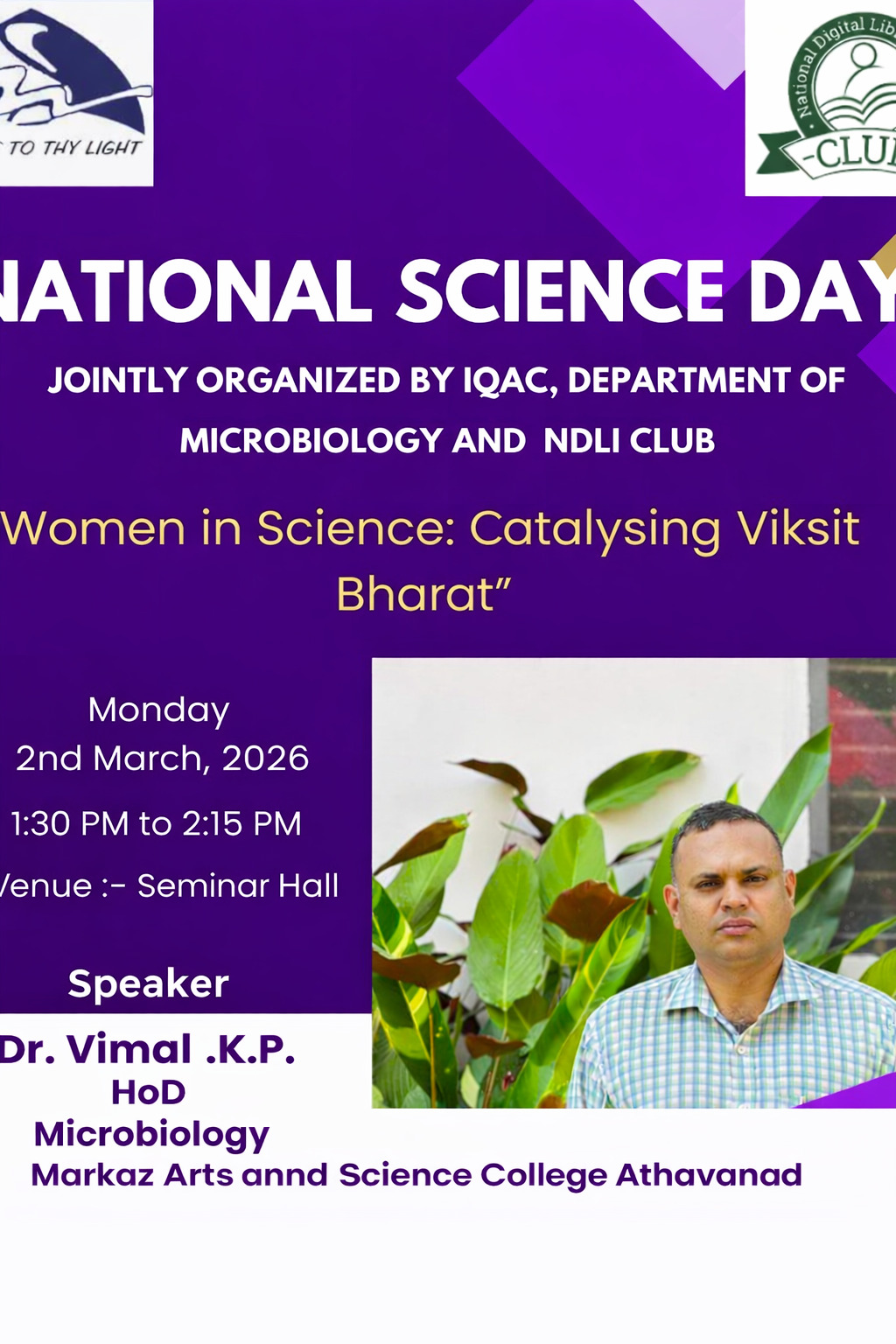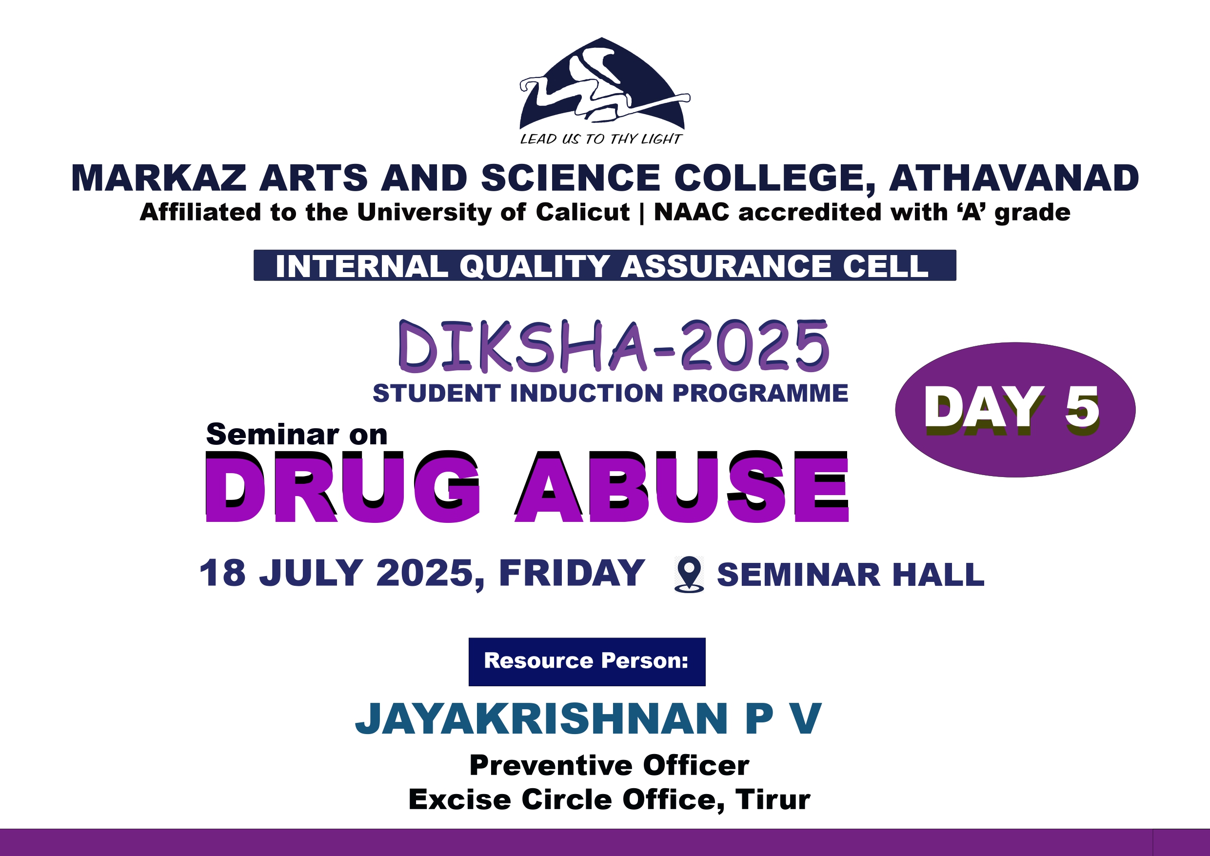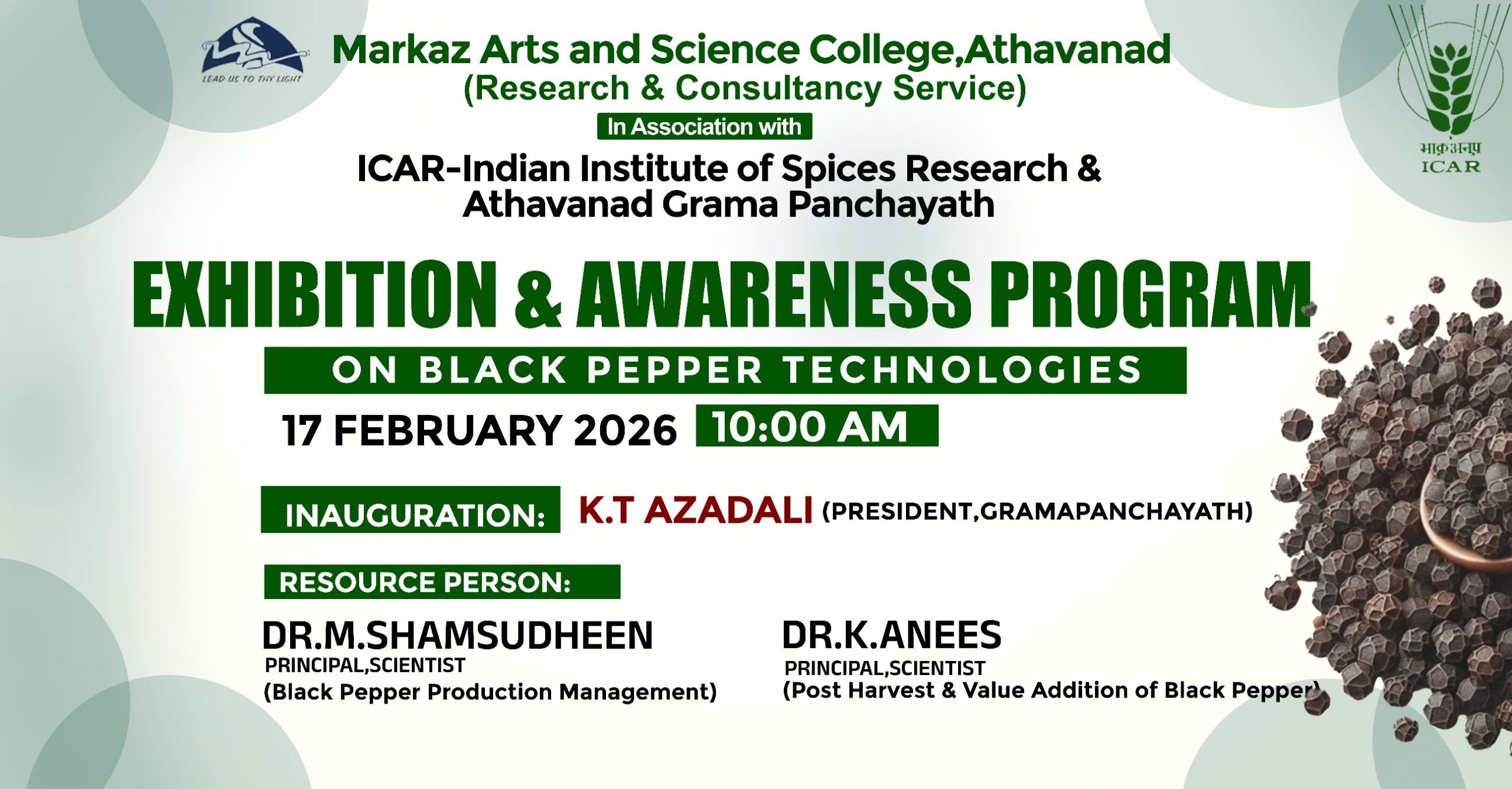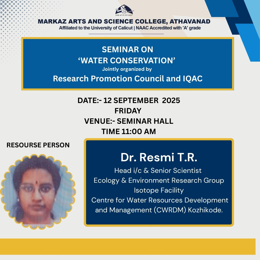 Greetings from Markaz CollegeAs Principal of Markaz Arts and Science College, it is my pleasure to welcome you to our college website.I am happy to provide you some useful information about our college and to give you a glimpse on different courses that we offer. We endeavor to provide each student with a curriculum which both challenges and inspires them to reach their individual potential. We offer nine UG courses and four PG courses from Arts, Commerce and Science. ......Read More